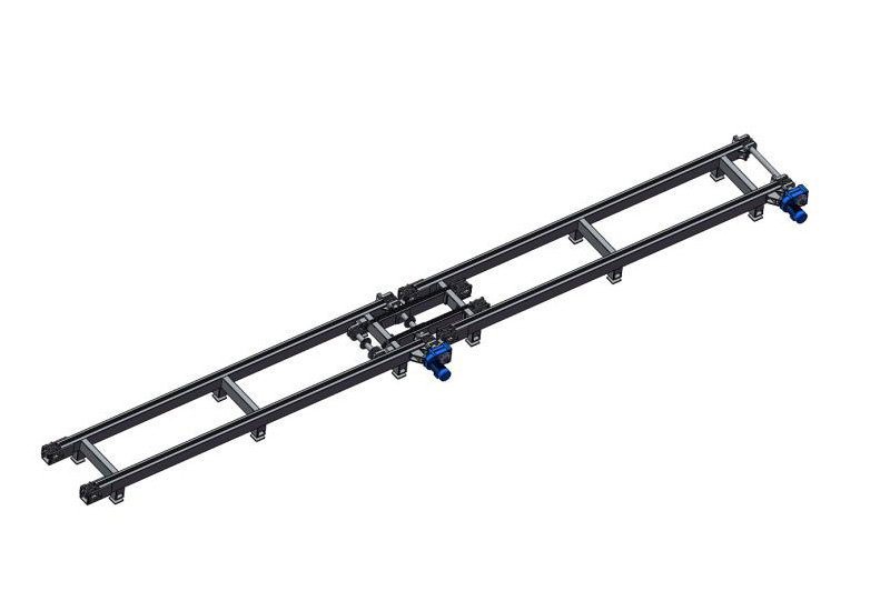 輸送鏈分單模式和雙模式,功率3kw,單模牽引機寬度為0.52m,雙模牽引機寬度為1.1m,長度根據(jù)工藝而定,