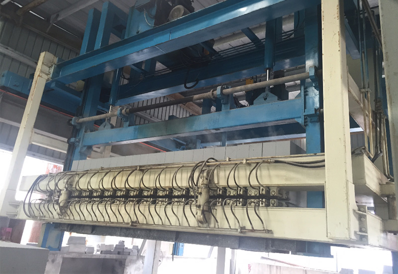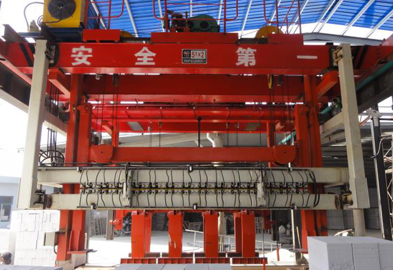 加氣塊掰板機由橫梁、豎梁、掰板部件和提升小車等部件組成。