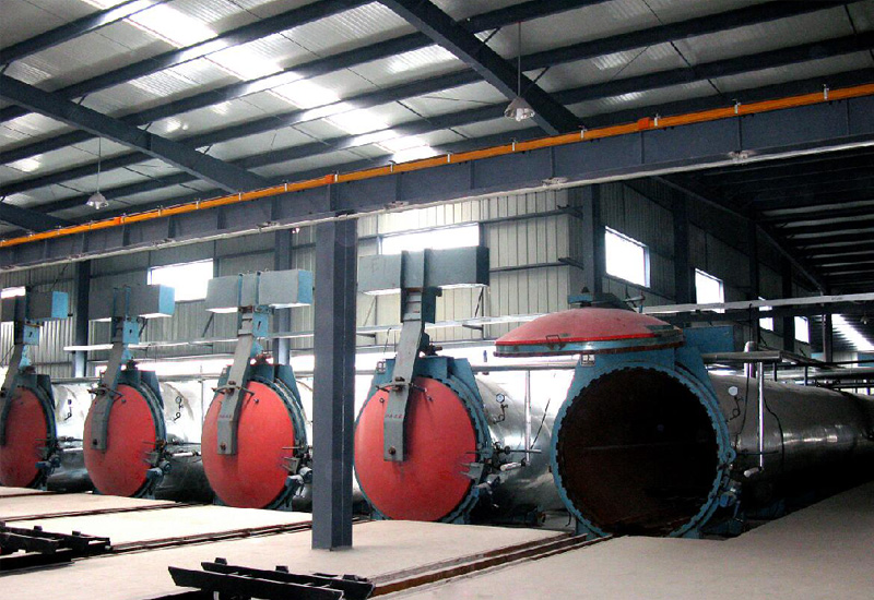 在加氣線中,切割好的坯體,進入蒸壓釜進行蒸養(yǎng),使磚達到一定的硬度。